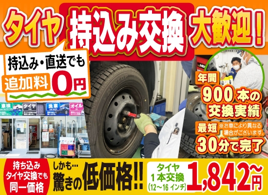 仕事帰りに!お出かけ前に! 当日OK!最短30分でタイヤ4本交換致します。