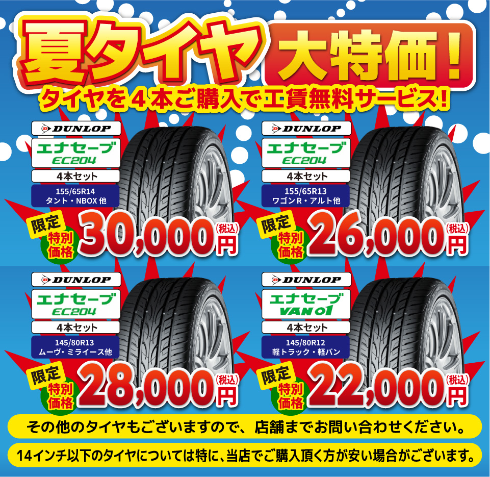 当店では、山口・防府・周南・宇部エリア最安値帯の価格でタイヤ交換を実施しています。